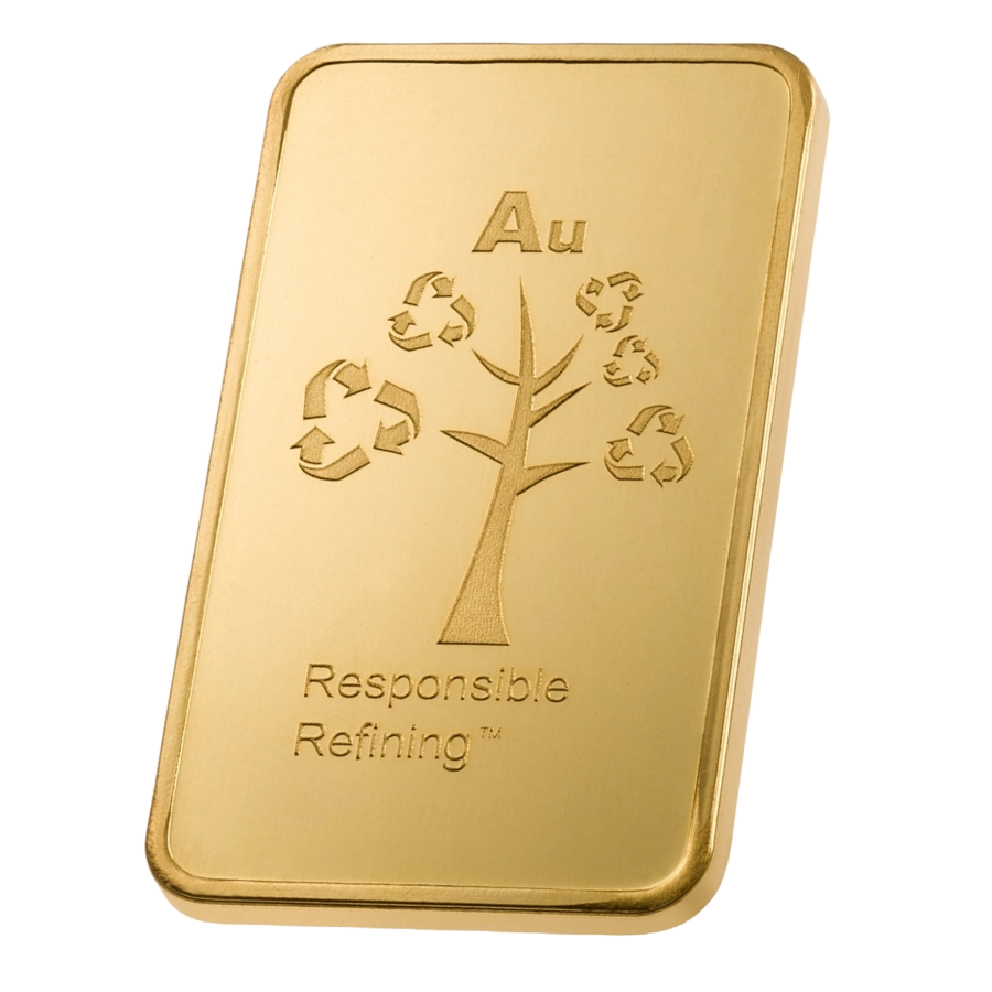 Baren er præget med vægt og renhed leveres forseglet og certificeret, i mint condition.