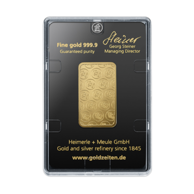 Flot udstanset Metalor guldbarre på 1 Oz (31,1 g.) i 24 karats guld.