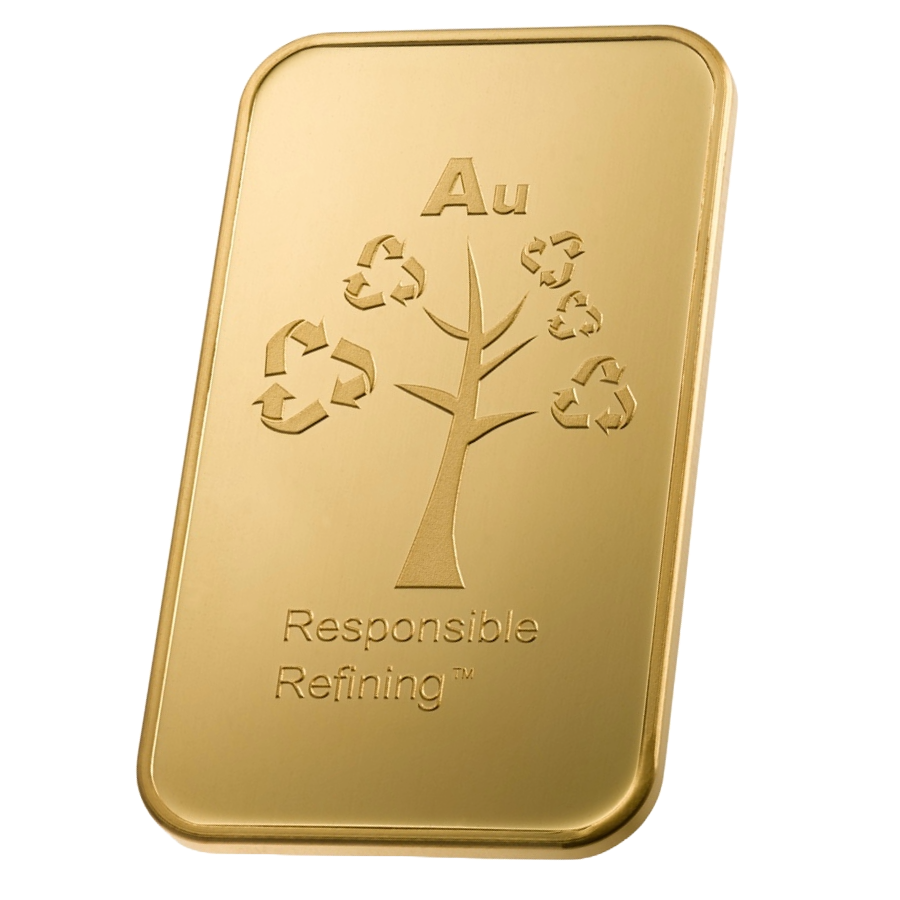 Baren er præget med vægt og renhed, leveres forseglet og certificeret, i mint condition.
