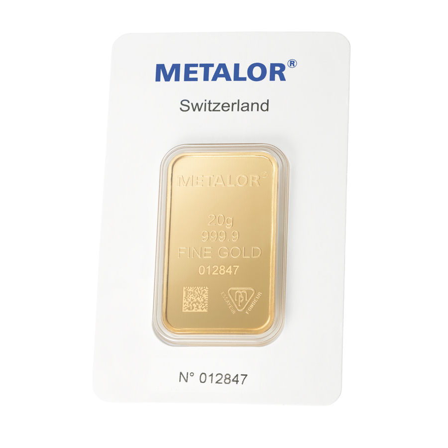 Metalor – 20 gram guldbarre stanset