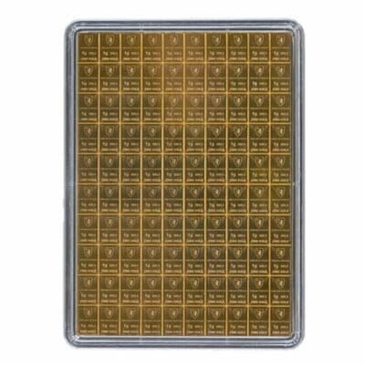 Flot udstanset Metalor guldbarre på 5 g. i 24 karats guld.