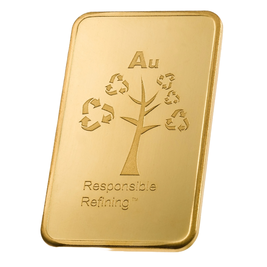 Flot udstanset Metalor guldbarre på 5 g. i 24 karats guld.